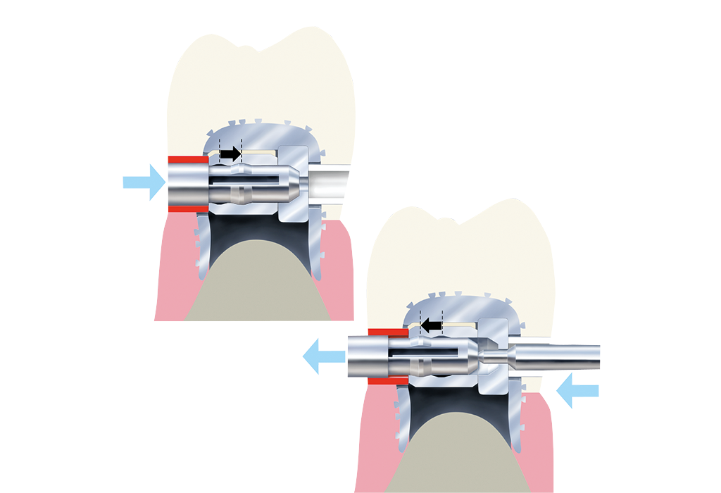 The Snap-Slot latch is a rigid extra coronal stabilizing and connecting element for partials, unilateral partials, constructions over implants as well as for split- and removable bridge work.